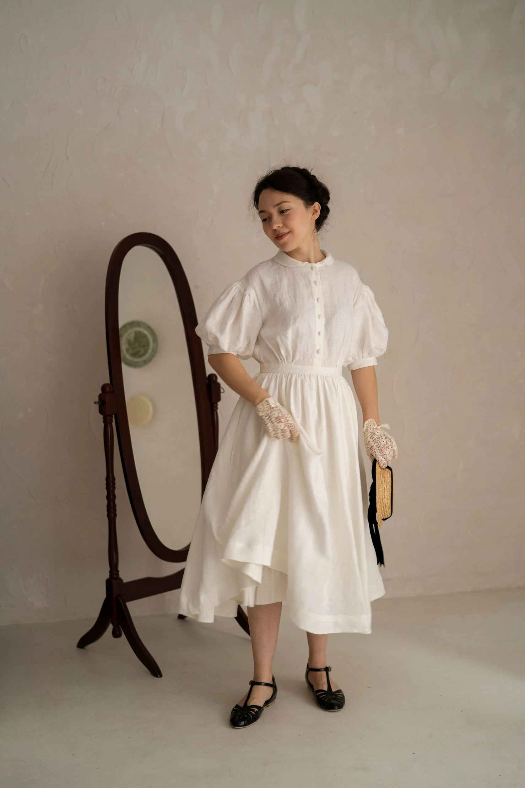 We recommend wearing a petticoat for the light colored linen dresses, as they may be translucent. A petticoat may be worn with any of our dresses to further embellish the skirt.