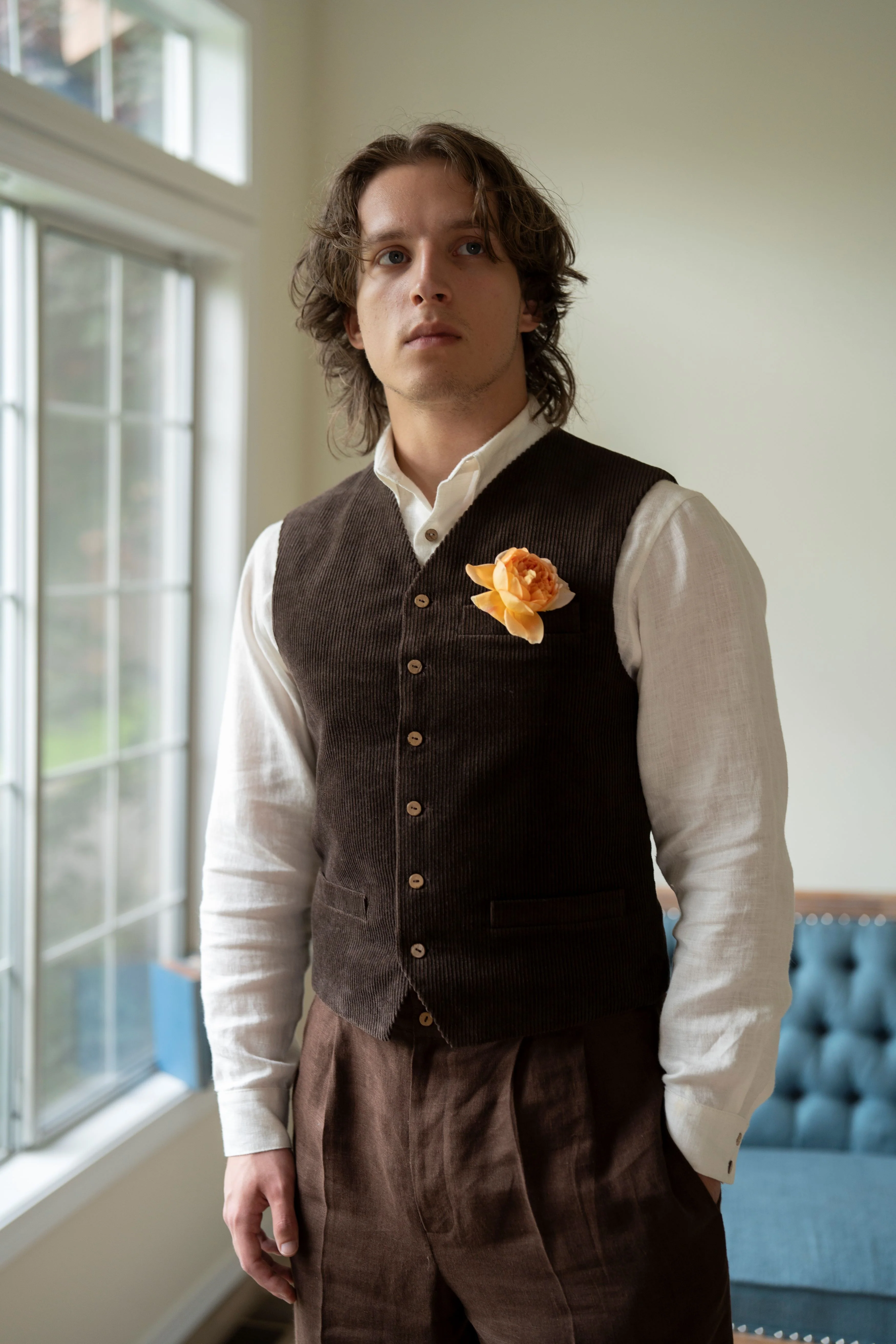 This corduroy vest is the perfect addition to any wardrobe, providing both comfort and style, and making a statement about one's appreciation for timeless fashion. It is versatile and can be worn with a variety of outfits, from a classic shirt and tie to a more casual look with a t-shirt and jeans.
