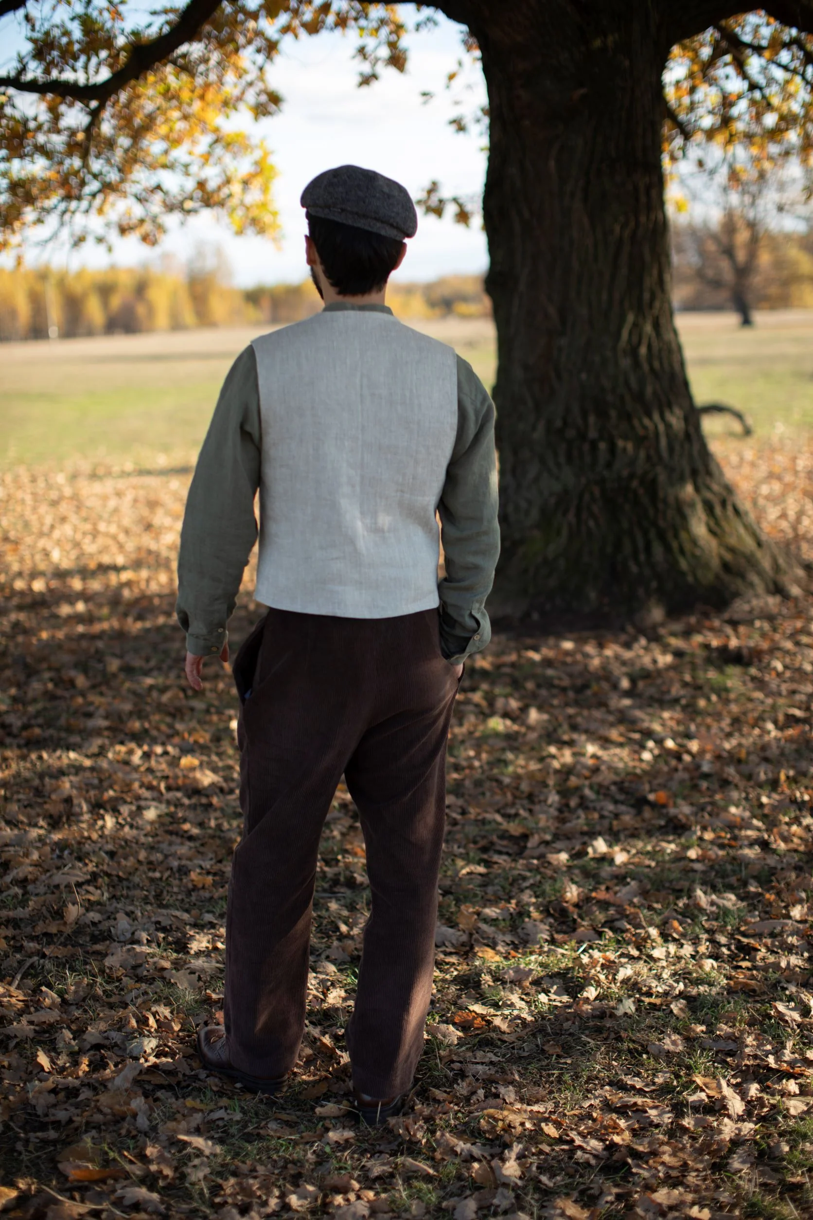 This linen vest is the perfect addition to any wardrobe, providing both comfort and style, and making a statement about one's appreciation for timeless fashion. It is versatile and can be worn with a variety of outfits, from a classic shirt and tie to a more casual look with a t-shirt and jeans.
