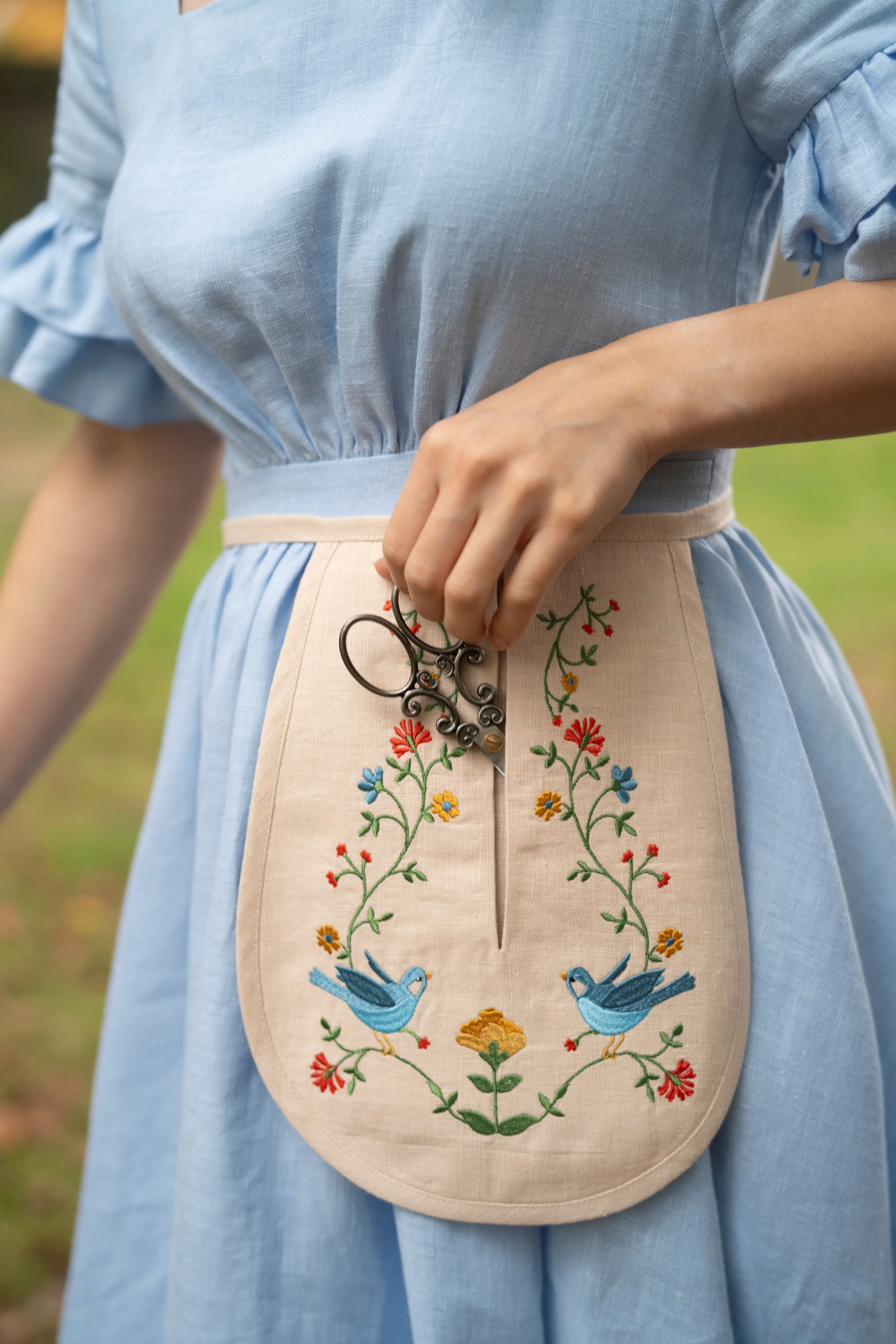 Pockets were an essential item for women in the 18th century, though they were an entirely separate piece of clothing! These charming pockets were embroidered and decorated to fit the individual’s personality. Our pocket is made from soft linen and features an original embroidery design by Jill Haupt of Under A Tin Roof, inspired after true 18th century pockets. Tie it around your waist and feel like you stepped back in time!